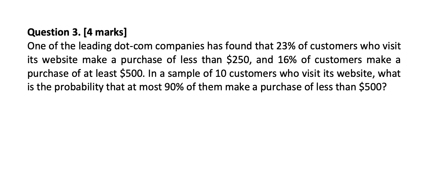 purchase of at least $500. In a sample of 10 customers who visit its website, what
