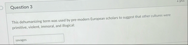 question-3-this-dehumanizing-term-was-used-by-pre-modern-european-scholars-to-suggest-that-other-cul-pa930