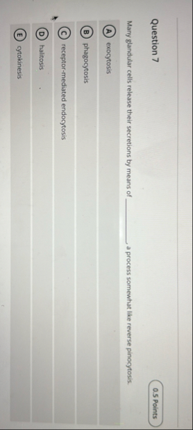 exocytosis phagocytosis receptor-mediated endocytosis halitosis cytokinesis