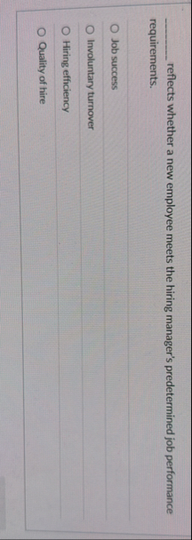 reflects whether a new employee meets the hiring manager's predetermined job performance requirements.