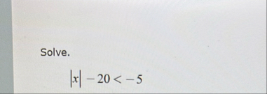 (Solved): Solve. |x|-20<-5 ...