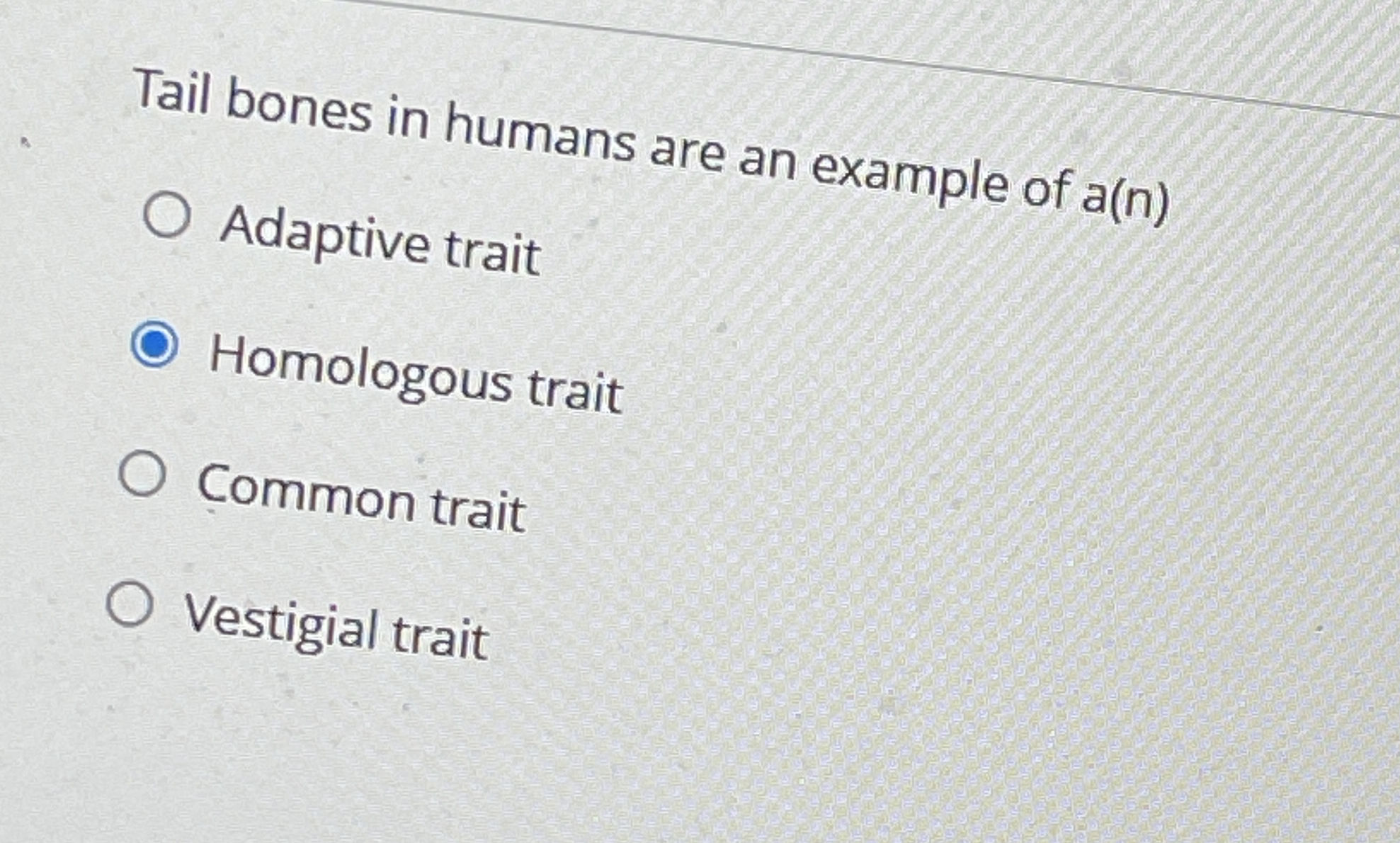 Adaptive trait Homologous trait Common trait Vestigial trait