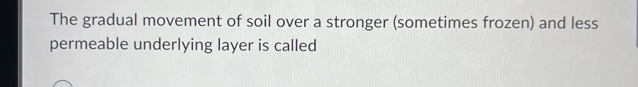 The gradual movement of soil over a stronger (sometimes frozen) and less permeable underlying layer is called
