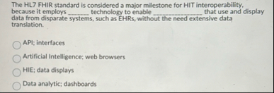 The HL7 FHIR standard is considered a major milestone for HIT interoperability. because it employs