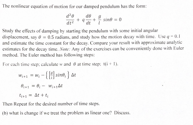 displacement, say \theta =0.5 radians, and study how the motion decay with time. Use q=0.1