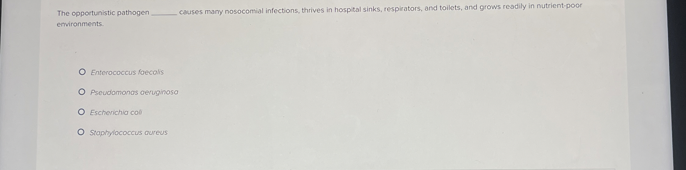 (Solved): The opportunistic pathogen causes many nosocomial infections, thrives in hospital sinks, respira ...