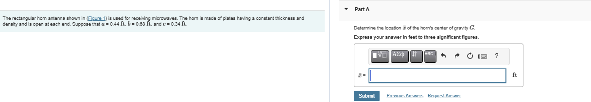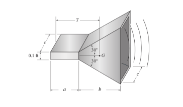 density and is open at each end. Suppose that a=0.44ft,b=0.68ft, and c=0.34ft.