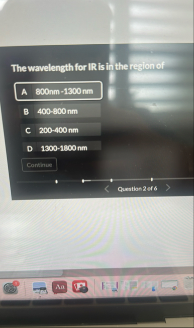 The wavelength for IR is in the region of A