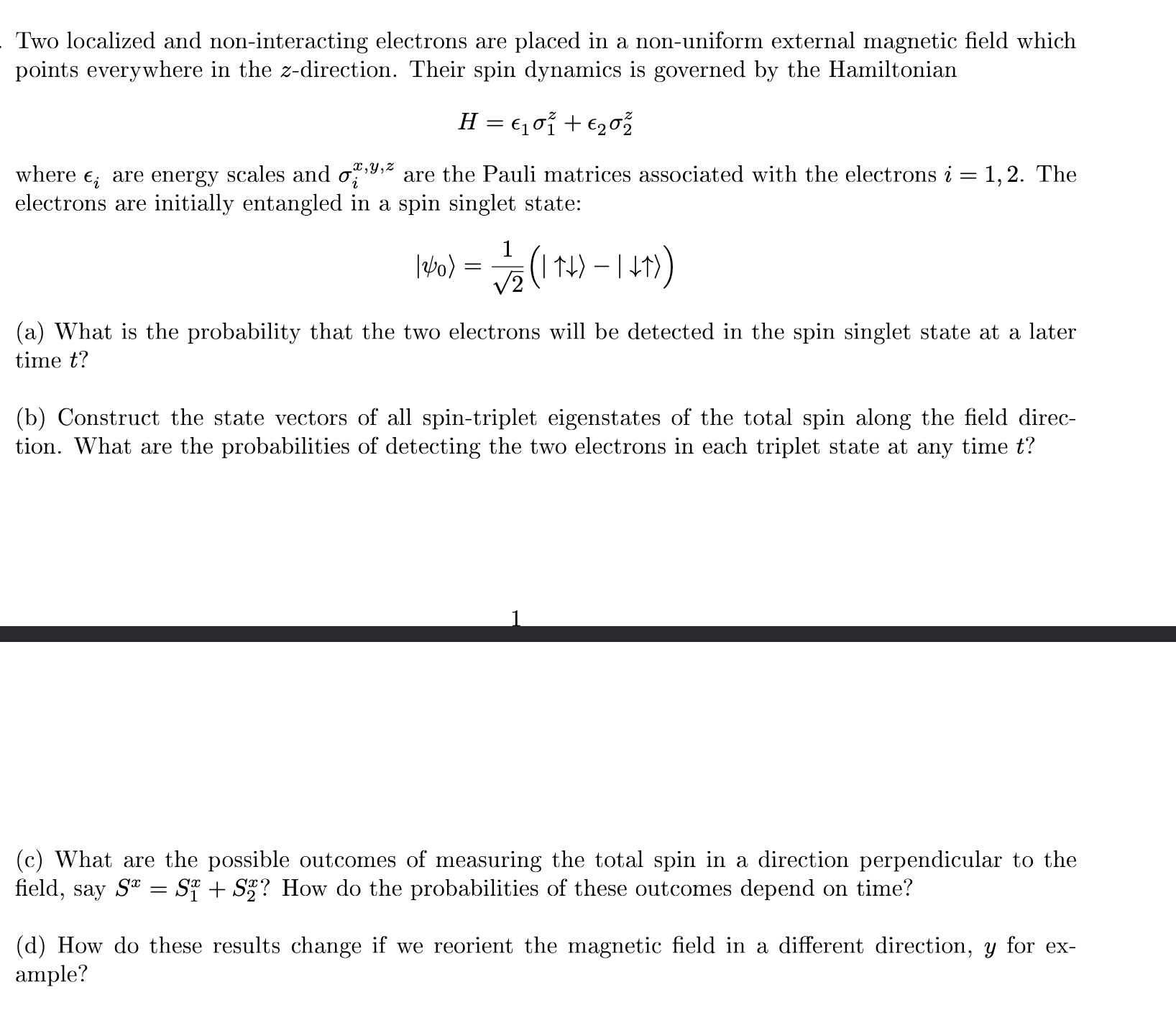 (b) Construct the state vectors of all spin-triplet eigenstates of the total spin along the field direc-