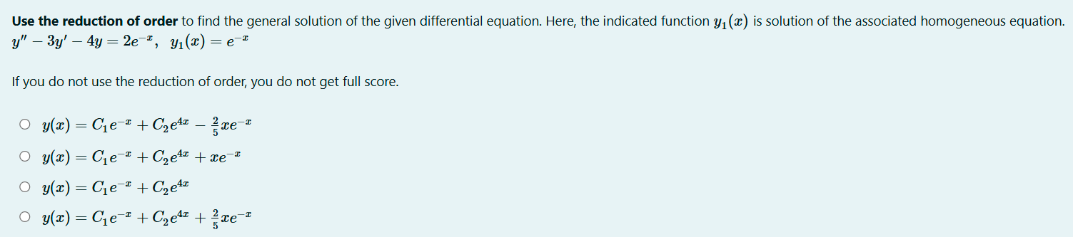 If you do not use the reduction of order, you do not get full score.