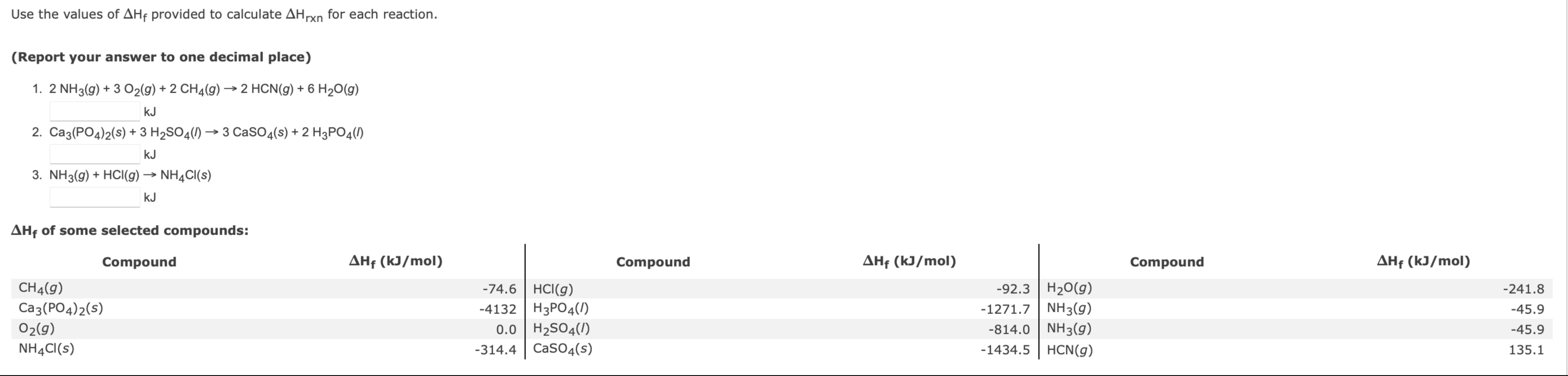 2NH_(3)(g)+3O_(2)(g)+2CH_(4)(g)->2HCN(g)+6H_(2)O(g)kJ
