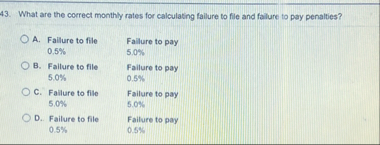 0.5%C. Failure to file Failure to pay 5.0% 5.0% D. Failure to file Failure to pay 0.5%