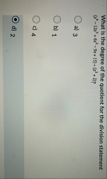 What is the degree of the quotient for the division statement