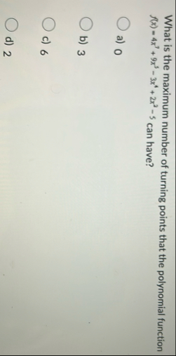 What is the maximum number of turning points that the polynomial function