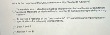 ?To mandate which standards must be implemented by health care organization receiving Medicare or Medicaid funds, in order to achieve interoperability among systems.