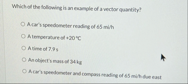 Which of the following is an example of a vector quantity? A car's speedometer reading of