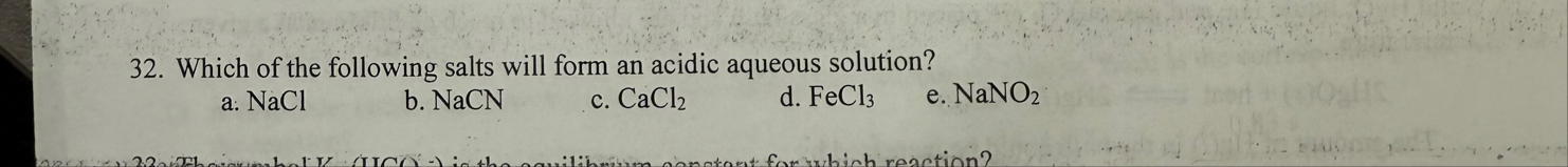 Which of the following salts will form an acidic aqueous solution? a. NaCl b. NaCN c.