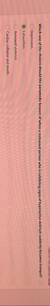which-one-of-the-choices-should-the-paramedic-beware-of-when-a-restrained-person-who-is-exhibiting-s-pa146