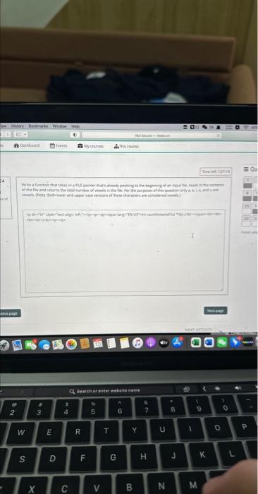 Write a function that takes in a FILE pointer that's already pointing to the beginning of an input file, reads in the contents of the file and returns the total number of vowels in the file. For the purposes of this question only a,e,i,0, and u are vowels. (Note: Both lower and upper case versions of these characters are considered vowels.) <p dir="itr" style = "text-align: left," >?/p>?p></p>< span lang="EN-US" > int countVowels(FILE *ifp) (<br></span><br ><br>?brs<br?)?br?<p?</p??