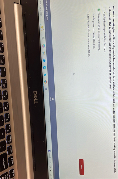 You are attempting to stabilize a 16 -year-old female who has been stabbed in the chest just under the right arm and you find a sucking sound in the area of the stab wound. The sucking chest wound requires what type of special care?